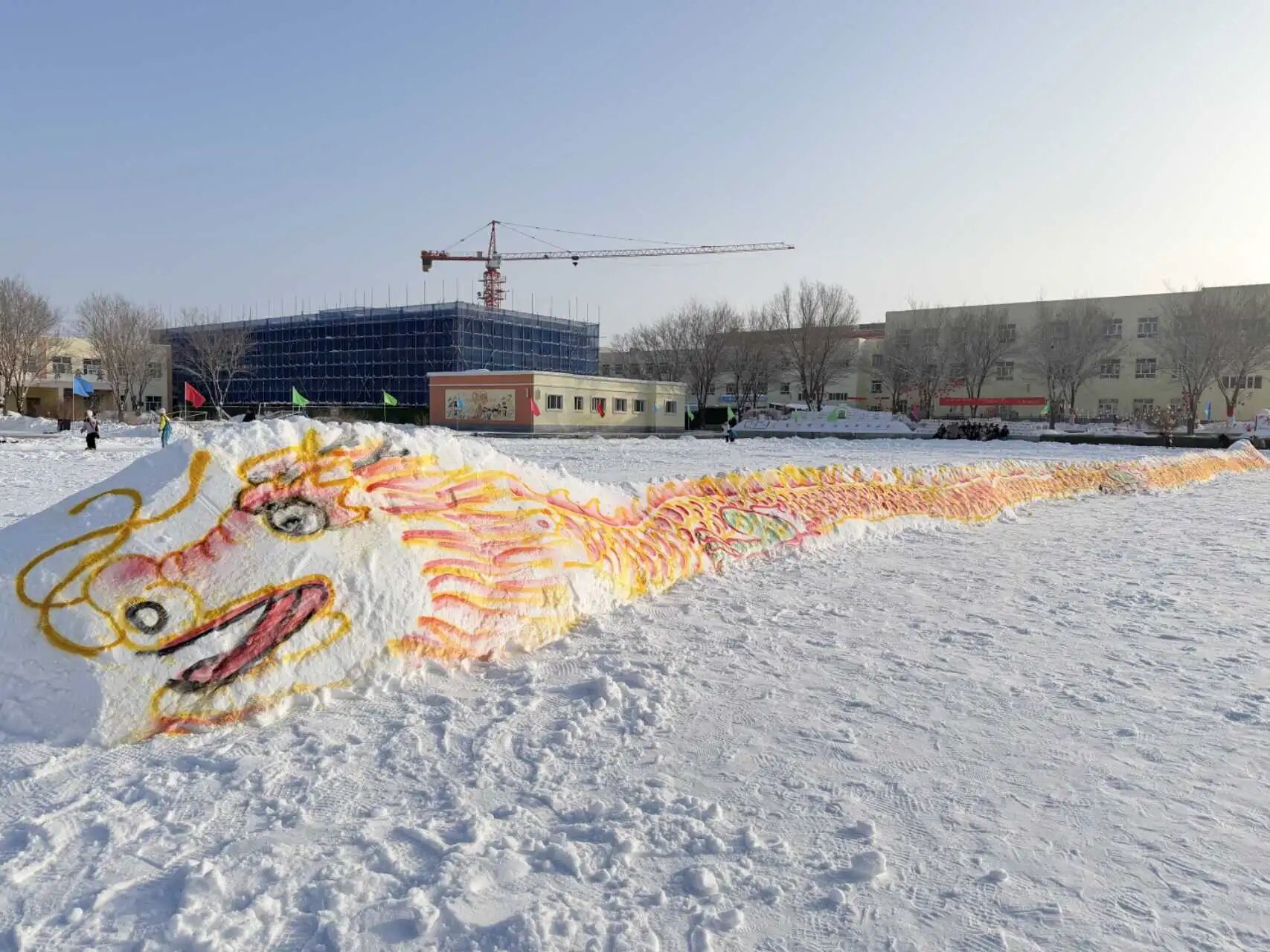 校园内,一个个穿上了川剧变脸服装的雪人显得憨态可掬,仿佛被赋予了生命,威风坦克、卡通熊猫、形似毡房的北庭故城、奥运五环等雪雕作品充满了孩子们无穷的想象力和创作灵感,威风凛凛的龙造型雪雕则彰显民族气魄,冰灯作品更是体现了巧妙的设计构思,镂空部分放置了精美花朵,在阳光下折射出斑斓光影,晶莹剔透又梦幻灵动。这些创意作品既丰富了学生们的校园文化生活,美化了校园,也将环境育人切实融入到了学生成长过程中。