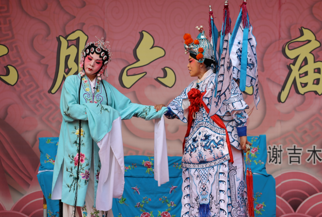 阜康游客李晓萍说:“咱们来吃美食,逛美景,听大戏,这里有豫剧团也有秦剧团,我们今天代表秦剧团来参加文化交流活动,给老百姓带来了秦腔演绎。”