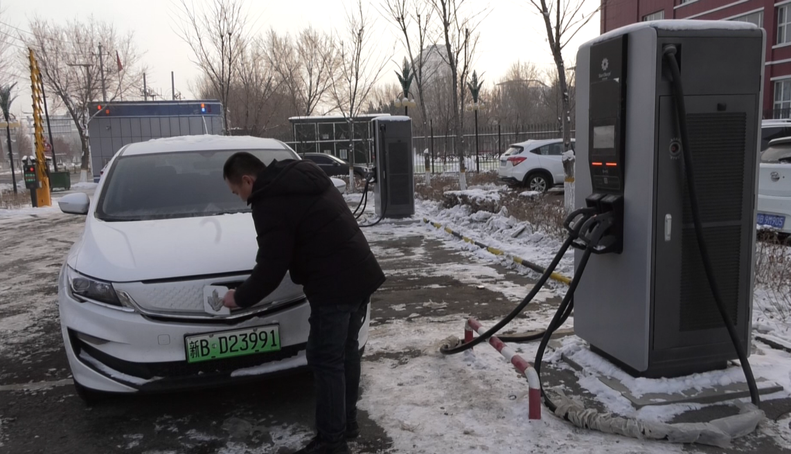 吉木萨尔县居民杨德鹏说:“现在小区周边就有充电桩,手机扫码就可以充电,操作简单,为我们新能源汽车用户带来了便利。”