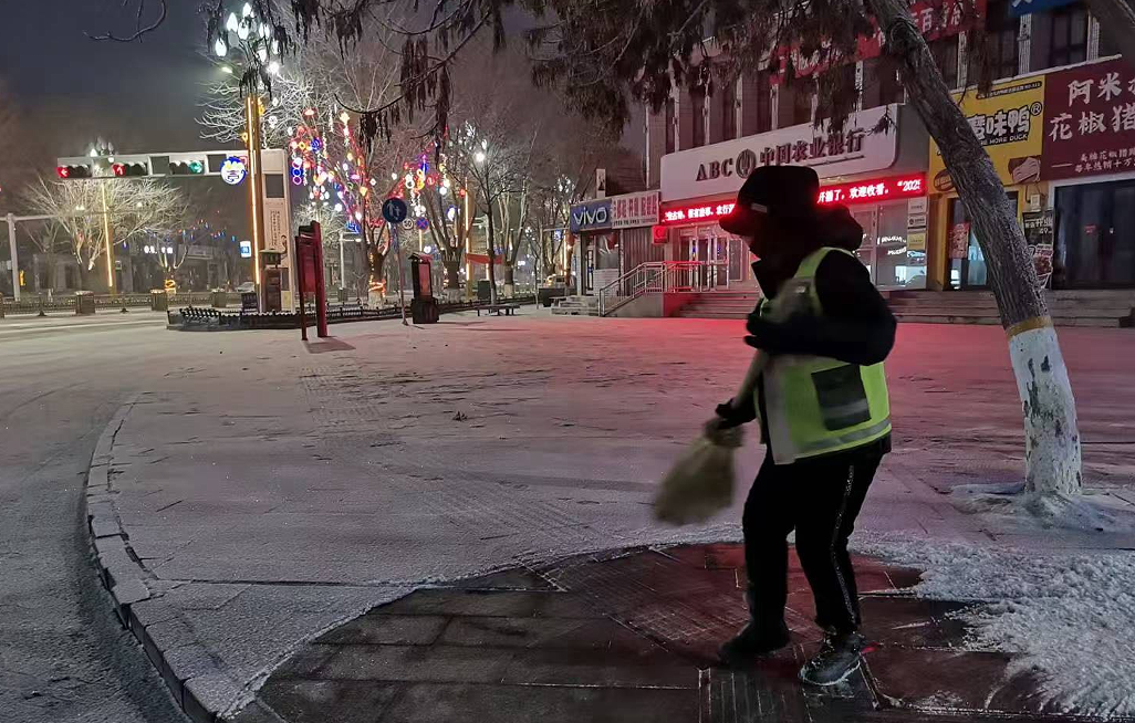 集中整治行动过程中,环卫工人手持清洁工具和垃圾袋,对卫生死角、公共厕所和垃圾桶周边等卫生薄弱区域进行“地毯式”卫生清扫,分工明确、应清尽清;同时针对“牛皮癣”小广告、宣传海报等随意张贴的广告标语,依次清除,净化辖区内广告环境。针对积雪、结冰道路,使用扫帚、铁锹等工具集中扫雪除冰,保障居民道路安全通畅。