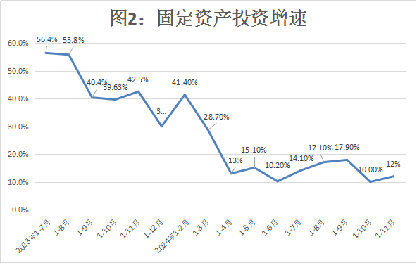 (二)固定资产投资稳定增长。1-11月,固定资产投资总额同比增长12%。