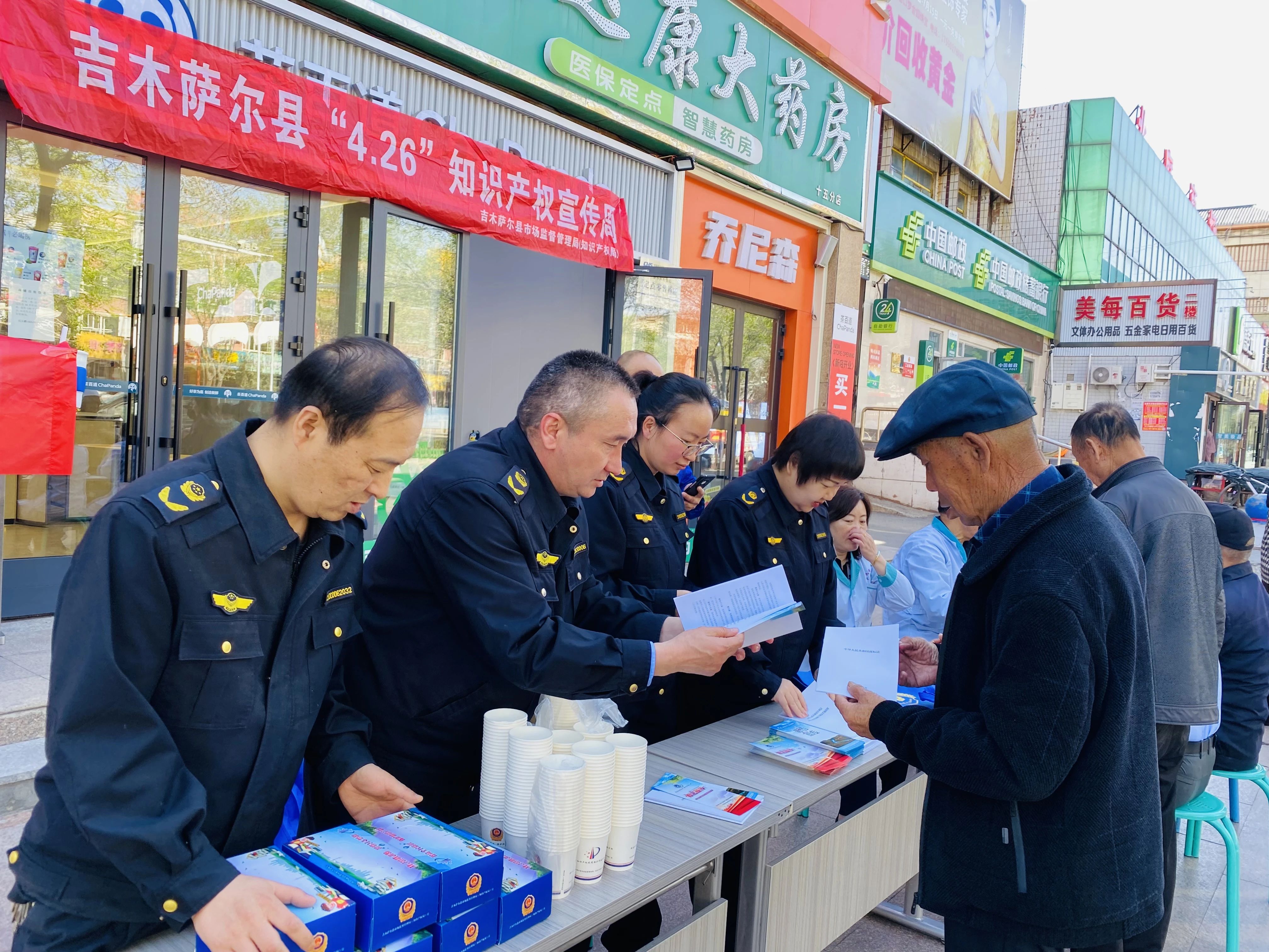 此次活动由吉木萨尔县市场监督管理局牵头,联合县委宣传部、文旅局等多部门共同开展。活动现场,工作人员通过设立咨询台、悬挂横幅、摆放展板、发放宣传资料等形式,向过往群众普及知识产权相关法律法规,重点围绕“扫黄打非”、版权、专利、商标,著作权等内容,详细讲解知识产权的申请、保护及维权途径,引导群众树立正确的知识产权观念。此外,活动还设置了免费测量血压环节,吸引众多市民积极参与。