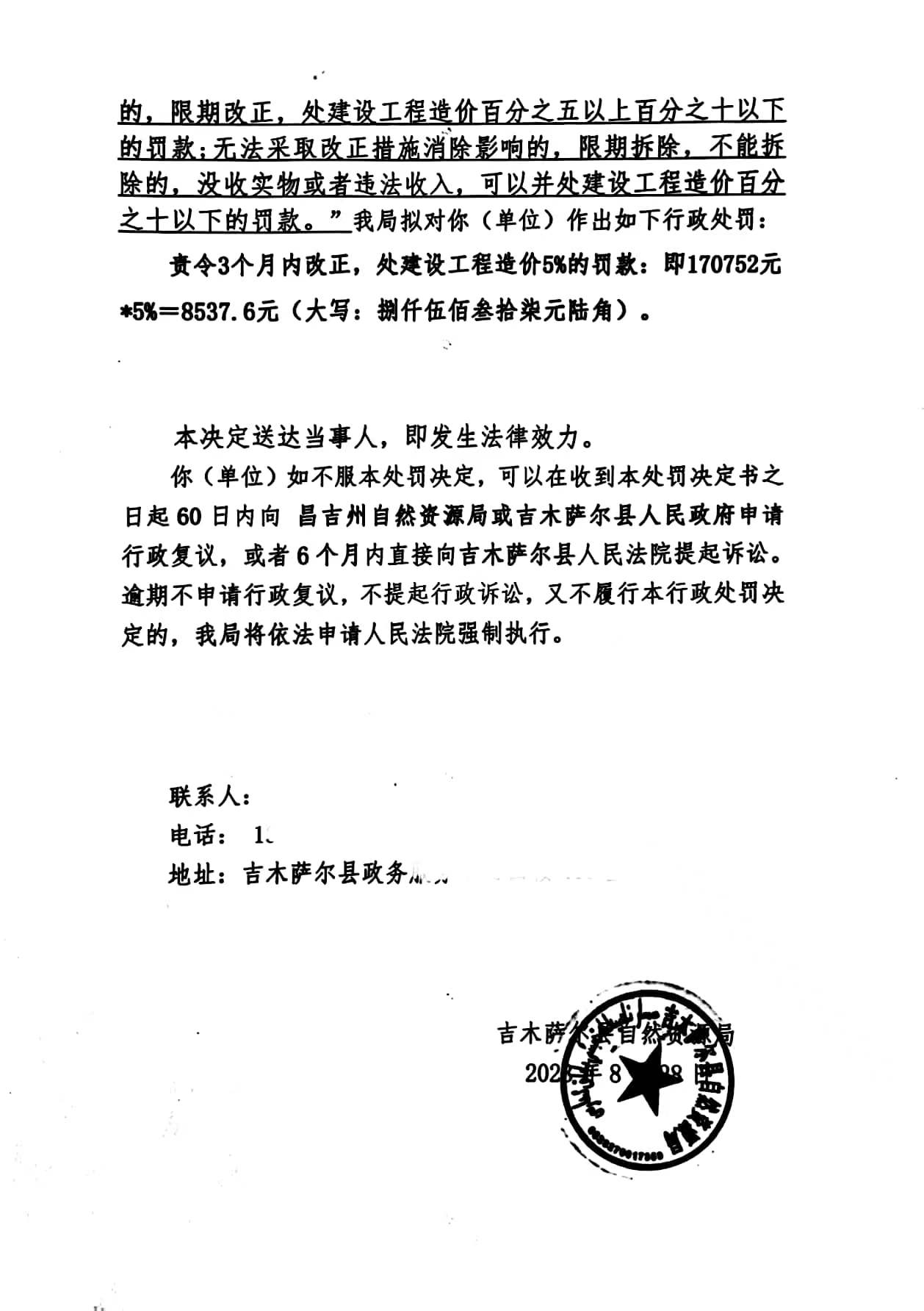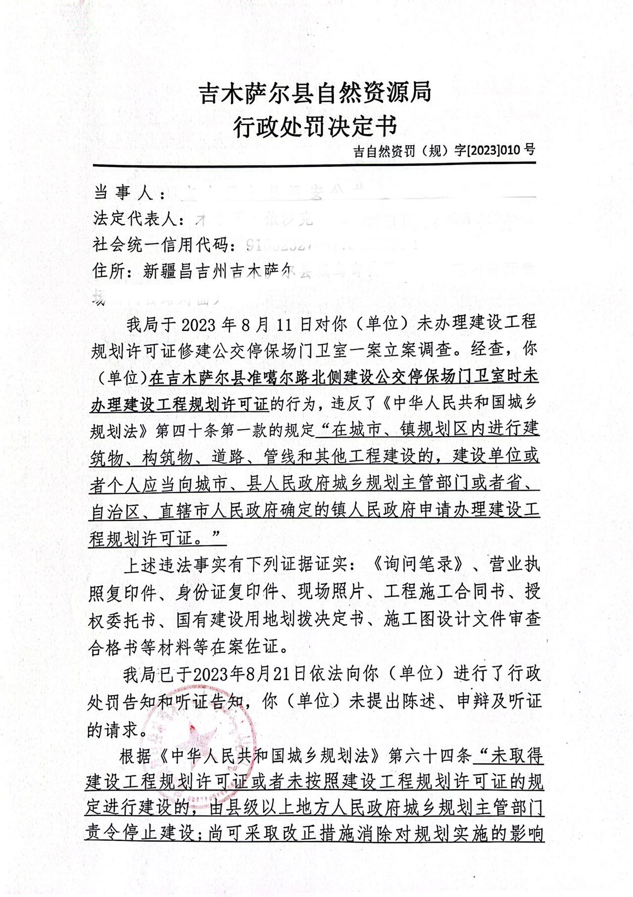 | 名称 | 自然资源局行政处罚决定书—吉自然资罚(规)字【2023】010号 | ||