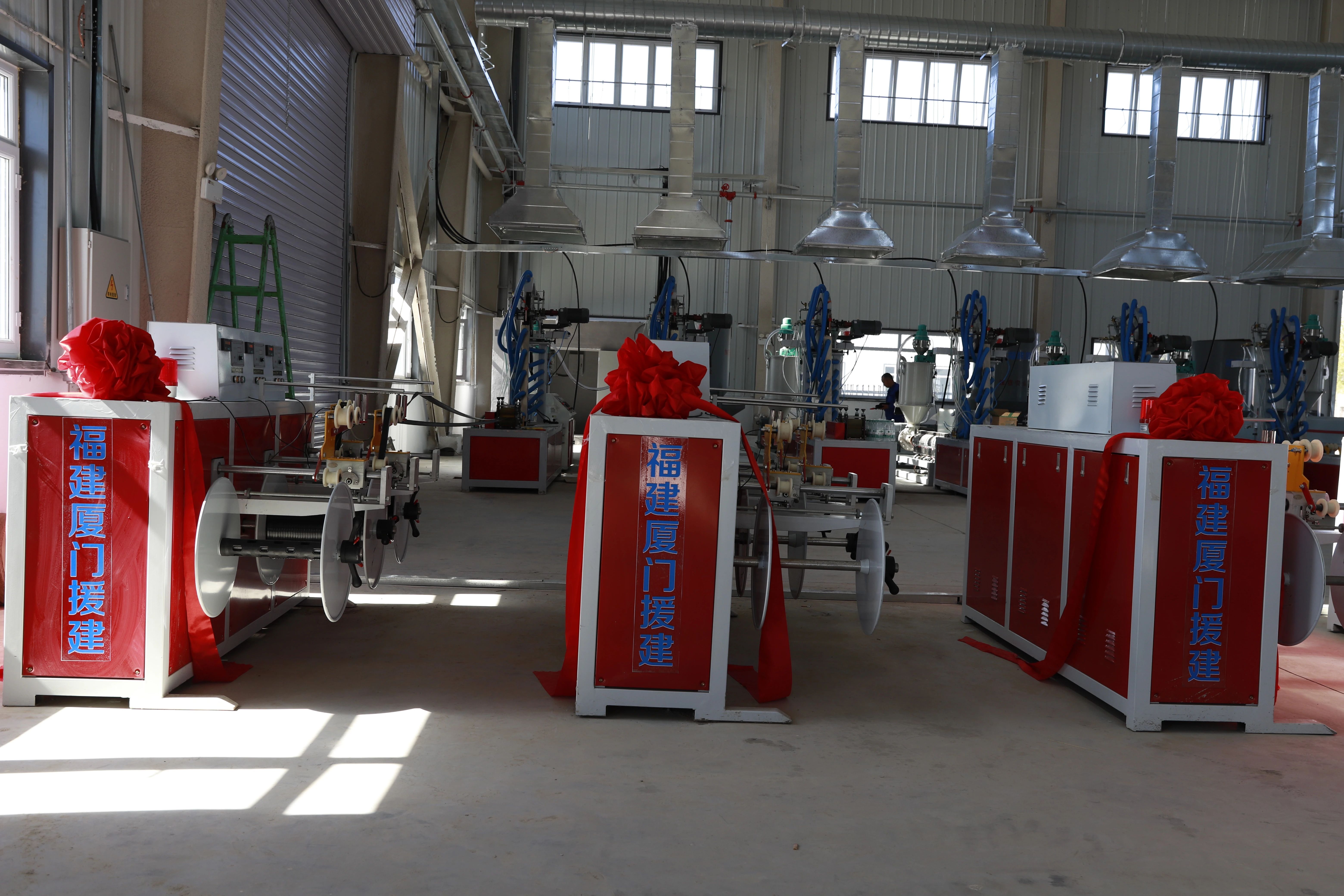 走进滴管带厂,生产车间里,机器轰鸣,工人们忙着测量、比对、添料和打压测试,每个环节都井然有序。老台乡西地村滴灌带厂是在老台乡西地村玉米烘干厂的基础上,利用水库移民项目资金和厦门援疆资金打造的农业产业联合体。该厂2023年10月开始建设,占地面积2000平方米,通过厦门援疆资金引进了先进的智能化迷宫式滴灌带生产线3台,主管带生产线1台,地膜生产线1台,是集回收、加工、销售为一体的综合性滴灌带生产企业,滴灌带厂投产后预计年生产滴灌带55000卷,PE软管10000卷,生产的滴灌带可满足全乡的需求量。