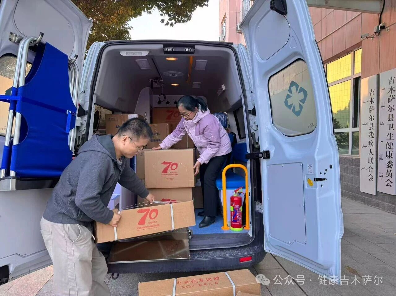 在新疆维吾尔自治区成立70周年的喜庆时刻,中央代表团带着党中央对边疆各族群众的深切关怀,专程送来包含医疗器材在内的慰问纪念品。10月16日,吉木萨尔县卫生健康委员会举行中央代表团援赠医疗纪念品发放仪式,将13台心电图机、26台血压计、26台血糖仪精准分发至全县各乡镇卫生院,为基层医疗服务“添装备、强底气”。