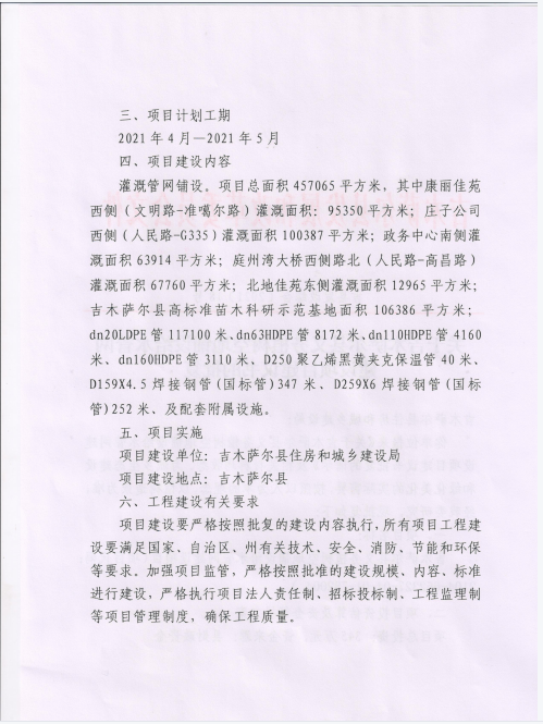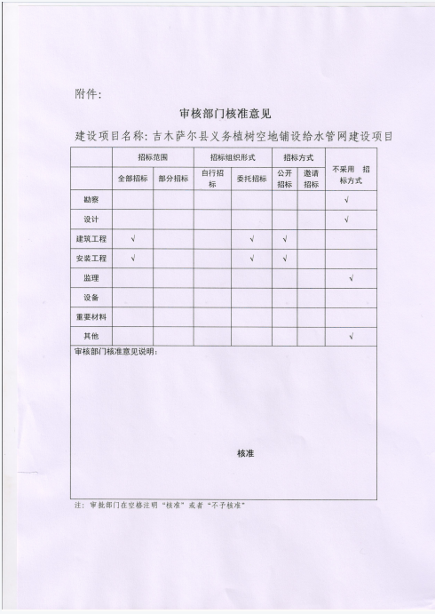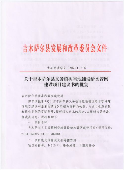 义务植树空地铺设给水管网建设项目建议书的批复